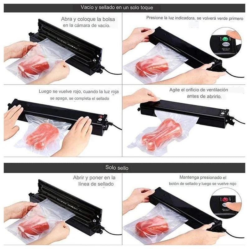 🍎 ¿Cansado de desperdiciar comida? Nuestro sellador al vacío es la solución perfecta para mantener tus alimentos frescos y deliciosos en casa. Ya sea carne, mariscos, frutas, verduras o bocadillos, este sellador hará que tus alimentos se mantengan en óptimas condiciones por más tiempo. 🥩🍤🍓
